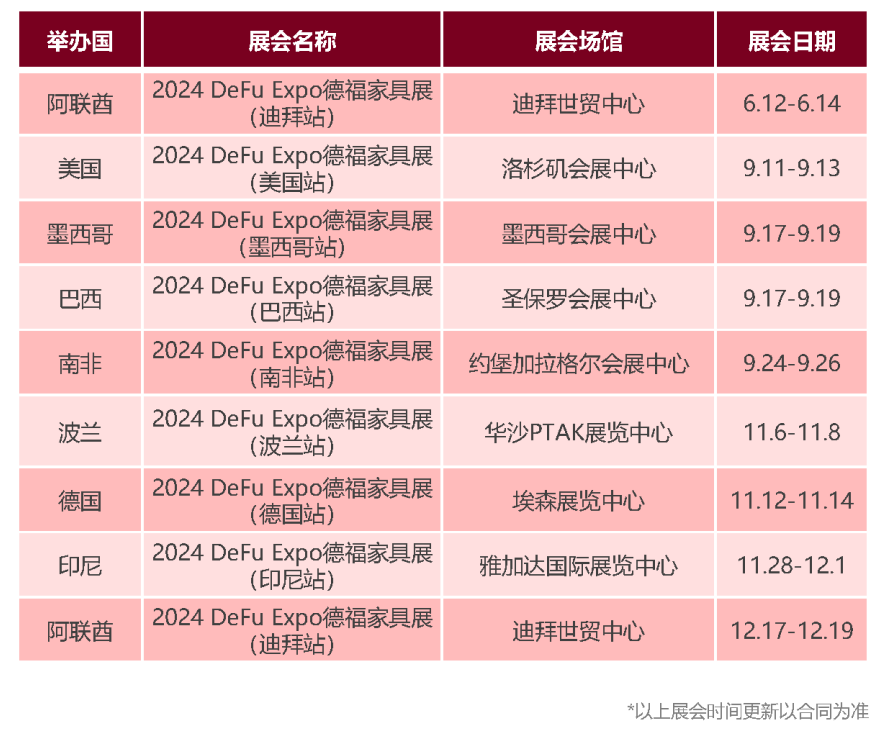 今年,DeFu Expo主推2024 DeFu Expo Dubai 以及 2024 DeFu Expo Indonesia ,旨在促进跨国贸易、推动商业合作、建立业务联系,为企业提供一个展示他们的产品和创新、扩大业务网络的平台。