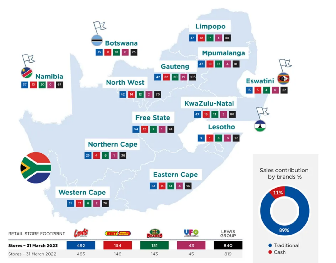 LEWIS GROUP 是一家领先的家具、家用电器、电子产品和家居用品零售商,旗下有 LEWIS、BEST HOME ANDELECTRIC、BEARES 和 UFO 等贸易品牌。该集团拥有840 家门店,覆盖南非主要大都市和农村地区以及邻近的非洲国家。