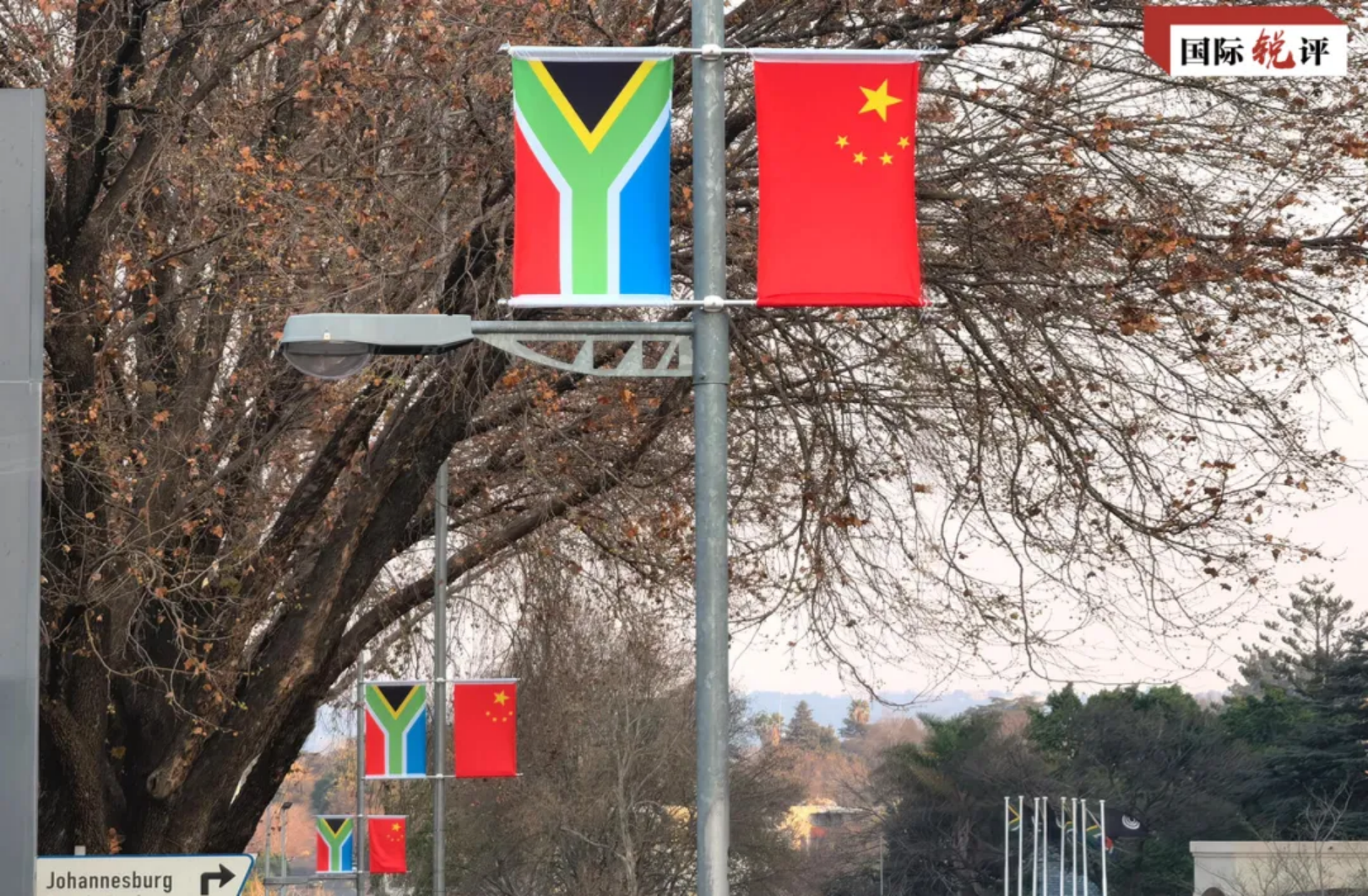 约翰内斯堡街头,中南两国国旗(总台央视记者韩锐拍摄)
